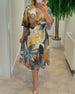SPESIFIKASJONER Stil: Elegant Materiale: 100% Polyester Kjole type: A-line Kjolens lengde: Midi Halslinje: V-hals Mønstertype: Trykt Ermetype: Vanlig erme Erme lengde: Kort erme Detaljer: Rynket Passform type: Vanlig Årstid: Vår,Sommer,Høst Anledning: Daglig Pakken inkluderer: 1 x Kjole STØRRELSESTABELL (cm) Størrelse Midje Lengd...