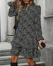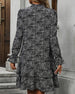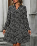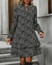 SPESIFIKASJONER Stil: Elegant Materiale: Chiffon,Polyester Kjole type: A-line Kjolens lengde: Midi Halslinje: V-hals Mønstertype: Trykt Ermetype: Lanterne erme Erme lengde: Langermet Detaljer: Knapper Passform type: Vanlig Årstid: Vår, Sommer, Høst Anledning: Daglig Pakken inkluderer: 1 x Kjole STØRRELSESTABELL (cm) Størrelse...