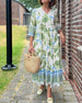 SPESIFIKASJONER Stil: Ferie, Elegant Materiale: Bomullsblandinger Kjole type: A-line Kjolens lengde: Midi Halslinje: V-hals Mønstertype: Blomstret Ermetype: Vanlig erme Erme lengde: 3/4 erme Detaljer: Lappeverk Passform type: Løs Årstid: Vår, Sommer, Høst Anledning: Daglig, Ferie Pakken inkluderer: 1 x Kjole STØRRELSESTABELL (cm) S...