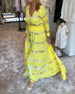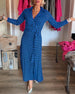 SPESIFIKASJONER Stil: Elegant Materiale: Bomullsblandinger Kjole type: A-line Kjolens lengde: Maxi Halslinje: V-hals Mønstertype: Trykt Ermetype: Lanterne erme Erme lengde: Langermet Detaljer: Snøre opp Passform type: Vanlig Årstid: Vår, Sommer, Høst Anledning: Daglig Pakken inkluderer: 1 x Kjole STØRRELSESTABELL (cm) Størrelse Bry...