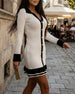 SPESIFIKASJONER Stil: Uformelt Materiale: Bomullsblandinger Kjole type: Bodycon Kjolens lengde: Over kneet Halslinje: V-hals Mønstertype: Fargeblokk Ermetype: Vanlig erme Erme lengde: Langermet Detaljer: Knapper,Rufsete Passform type: Vanlig Årstid: Høst,Vinter Anledning: Daglig Pakken inkluderer: 1 x Kjole STØRRELSESTABELL (cm) Størrel...