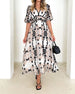 SPESIFIKASJONER Stil: Elegant Materiale: Bomullsblandinger Kjole type: A-line Kjolens lengde: Maxi Halslinje: V-hals Mønstertype: Trykt Ermetype: Vanlig erme Erme lengde: Ni poengs erme Passform type: Vanlig Årstid: Vår, Sommer Anledning: Daglig Pakken inkluderer: 1 x Kjole STØRRELSESTABELL (cm) Størrelse Bryst Lengde S 95 130 ...