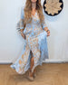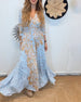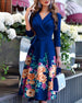 Elegant maxikjole med lange ermer i jakkeslag med blomstertrykk