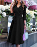 SPESIFIKASJONER Stil: Elegant,Fest Materiale: 50% PU 50% Polyester Kjole type: A-line Kjolens lengde: Over kneet Halslinje: V-hals Mønstertype: Ensfarget Ermetype: Vanlig erme Erme lengde: Langermet Detaljer: Snøre opp Passform type: Vanlig Årstid: Vår,Høst,Vinter Anledning: Daglig,Parti Pakken inkluderer: 1 x Kjole STØRRELSESTABELL (cm) ...