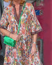 SPESIFIKASJONER Stil: Elegant Materiale: Bomullsblandinger Kjole type: A-line Kjolens lengde: Maxi Halslinje: V-hals Mønstertype: Trykt Ermetype: Pufferme Erme lengde: Halv erme Detaljer: Lappeverk Passform type: Vanlig Årstid: Vår, Sommer, Høst Anledning: Daglig Pakken inkluderer: 1 x Kjole STØRRELSESTABELL (cm) Størrelse Brys...