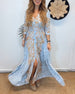 SPESIFIKASJONER Stil: Elegant Materiale: 100% Polyester Kjole type: A-line Kjolens lengde: Maxi Halslinje: Slag Mønstertype: Blomstret Ermetype: Vanlig erme Erme lengde: Langermet Detaljer: Spalte Passform type: Vanlig Årstid: Vår, Sommer Anledning: Daglig Pakken inkluderer: 1 x Kjole STØRRELSESTABELL (cm) Størrelse Bryst Lengde Ar...