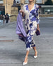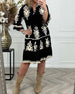 SPESIFIKASJONER Stil: Elegant Materiale: Bomullsblandinger Kjole type: A-line Kjolens lengde: Midi Halslinje: V-hals Mønstertype: Trykt Ermetype: Vanlig erme Erme lengde: Langermet Detaljer: Knapper,Snøring Passform type: Vanlig Årstid: Vår,Sommer Anledning: Daglig Pakken inkluderer: 1 x Kjole STØRRELSESTABELL (cm) Størrelse Bryst Lengde S...