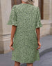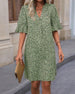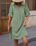 SPESIFIKASJONER Stil: Elegant Materiale: Bomullsblandinger Kjole type: Rett Kjole Kjolens lengde: Midi Halslinje: V-hals Mønstertype: Trykt Ermetype: Lanterne erme Erme lengde: 3/4 erme Passform type: Vanlig Årstid: Vår, Sommer, Høst Anledning: Daglig Pakken inkluderer: 1 x Kjole STØRRELSESTABELL (cm) Størrelse Bryst Lengde S 95 120 M 10...