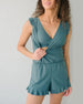 Badedrakt med avslappet trykk og shorts i to deler