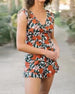 Badedrakt med flerfarget og høy midje og skiller