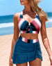 SPESIFIKASJONER Stil: Ferie, Sexy Materiale: 85 % Polyester, 15 % Spandex Anledning: Ferie Mønstertype: Fargeblokk Erme lengde: Ermeløs Topp type: Bikini BH type: Bøyle-fri BH Truse type: Skjørt Passform type: Vanlig Årstid: Sommer Detaljer: Kryssstropper Pakken inkluderer: 1 x Bikini STØRRELSESTABELL (cm) Størrelse Bryst Midje Hofte Unde...