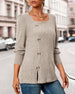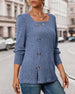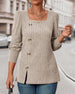 SPESIFIKASJONER Topp type: Topper Stil: Elegant, Forretning Materiale: 95% polyester, 5% spandex Anledning: Daglig, Arbeid Halslinje: Firkantet hals Mønstertype: Ensfarget Ermetype: Lanterne erme Erme lengde: Langermet Passform type: Vanlig Årstid: Vår, Høst, Vinter Detaljer: Knapper, Spalte Pakken inkluderer: 1 x Topp STØRRELSESTABELL (cm...