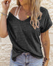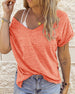 SPESIFIKASJONER Topp type: T skjorte Stil: Uformelt Materiale: Bomullsblandinger Anledning: Daglig Halslinje: V-hals Mønstertype: Ensfarget Ermetype: Vanlig erme Erme lengde: Kort erme Passform type: Vanlig Årstid: Vår, Sommer, Høst Detaljer: Snøre opp Pakken inkluderer: 1 x T-skjorte STØRRELSESTABELL (cm) Størrelse Bryst(cm) Leng...