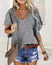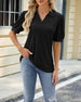 SPESIFIKASJONER Topp type: Topper Stil: Uformelt, Elegant Materiale: Bomullsblandinger Anledning: Daglig Halslinje: V-hals Mønstertype: Ensfarget Ermetype: Vanlig erme Erme lengde: Kort erme Passform type: Vanlig Årstid: Vår, Sommer Detaljer: Knapper Pakken inkluderer: 1 x Topp STØRRELSESTABELL (cm) Størrelse Bryst Lengde S 95 68 M 100 6...