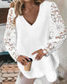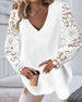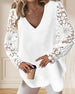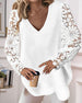 SPESIFIKASJONER Topp type: Topper Stil: Uformelt Materiale: Bomullsblandinger Anledning: Daglig Halslinje: V-hals Mønstertype: Ensfarget Ermetype: Vanlig erme Erme lengde: Langermet Passform type: Vanlig Årstid: Vår, Høst, Vinter Detaljer: Blonder Pakken inkluderer: 1 x Topp STØRRELSESTABELL (cm) Størrelse Bryst Lengde S 102 68 M 107 ...