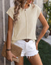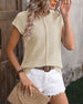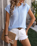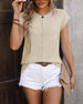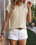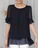 SPESIFIKASJONER Topp type: Topper Stil: Elegant, Forretning Materiale: Bomullsblandinger Anledning: Daglig, Arbeid Halslinje: Rund hals Mønstertype: Ensfarget Ermetype: Volanger erme Erme lengde: Halv erme Passform type: Vanlig Årstid: Vår, Sommer, Høst Detaljer: Lappeverk Pakken inkluderer: 1 x Topp STØRRELSESTABELL (cm) Størrelse Bryst Len...
