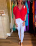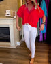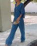 SPESIFIKASJONER Stil: Uformelt Topp type: Bluser Materiale: Chiffon,Polyester Mønstertype: Ensfarget Halslinje: V-hals Ermetype: Vanlig erme Erme lengde: Halv erme Bukse type: Rett ben Bukselengde: Lang Midje type: Høyt liv Passform type: Vanlig Årstid: Vår, Sommer, Høst Anledning: Daglig Pakken inkluderer: 1 x Bluse, 1 x Bukser STØRRELSE...