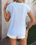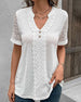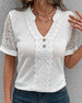 SPESIFIKASJONER Topp type: T skjorte Stil: Uformelt Materiale: Bomullsblandinger, Blonder Anledning: Daglig Halslinje: V-hals Mønstertype: Ensfarget Ermetype: Vanlig erme Erme lengde: Kort erme Passform type: Vanlig Årstid: Vår, Sommer, Høst Detaljer: Lappeverk, Knapper, Blonder Pakken inkluderer: 1 x T-skjorte STØRRELSESTABELL (cm) ...