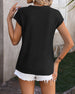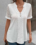 SPESIFIKASJONER Topp type: Topper Stil: Elegant, Forretning Materiale: Bomullsblandinger, Blonder Anledning: Daglig, Arbeid Halslinje: V-hals Mønstertype: Ensfarget Ermetype: Vanlig erme Erme lengde: Kort erme Passform type: Vanlig Årstid: Vår, Sommer, Høst Detaljer: Lappeverk Pakken inkluderer: 1 x Topp STØRRELSESTABELL (cm) Størrelse Bryst...