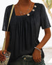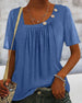 SPESIFIKASJONER Stil: Uformelt, Ferie Hals: Asymmetrisk utringning Ermetype: Vanlig erme Ermelengde: Kortermet Mønstertype: Ensfarget Anledning: Daglig, Helligdager Passform: Vanlig Detaljer: Knapper Materiale: Bomullsblandinger Sesong: Vår, sommer Pakken inneholder: 1 × Topp STØRRELSESTABELL (cm) Størrelse Brystvidde Le...