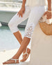 Beskårne bukser med blondesøm i ensfarget