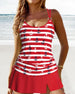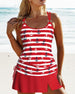 SPESIFIKASJONER Stil: Ferie Materiale: 15% Spandex,85% Polyester Anledning: Ferie Halslinje: V-hals Mønstertype: Trykt Erme lengde: Ermeløs Topp type: Tankini BH type: Bøyle-fri BH Truse type: Skjørt Passform type: Vanlig Årstid: Vår,Sommer Pakken inkluderer: 1 x Tankini STØRRELSESTABELL (cm) Størrelse Bryst Midje Hofte Under byste S 88 73...