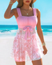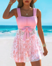 Svømmedrakt Utsmurt Blomstrete Båndskjørt To-delt