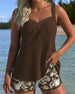 SPESIFIKASJONER Stil: Ferie Materiale: 15% Spandex,85% Polyester Anledning: Ferie Halslinje: V-hals Mønstertype: Trykt Erme lengde: Ermeløs Topp type: Tankini BH type: Bøyle-fri BH Truse type: Shorts Passform type: Skinny Pakken inkluderer: 1 x Tankini STØRRELSESTABELL (cm) Størrelse Bryst Midje Hofte Under byste S 88 73 96 73 M 92 77 10...