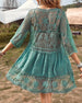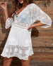 SPESIFIKASJONER Stil: Elegant Materiale: Bomull,Akryl Anledning: Ferie Halslinje: V-hals Mønstertype: Ensfarget Ermetype: Vanlig erme Erme lengde: 3/4 erme Topp type: Over-klær Passform type: Løs Detaljer: Lappeverk,Blonder Pakken inkluderer: 1 x Strandklær STØRRELSESTABELL (cm) Størrelse Skulder Bryst Arm Lengde En størrelse 40 120 ...