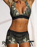 SPESIFIKASJONER Stil: Ferie, Sexy Materiale: Chinlon Anledning: Ferie Halslinje: Halter Mønstertype: Kamuflere, Trykt Erme lengde: Ermeløs Topp type: Bikini BH type: Bøyle-fri BH Truse type: Shorts Passform type: Vanlig Detaljer: Snøre opp, Snøring Pakken inkluderer: 1 x Bikini STØRRELSESTABELL (cm) Størrelse Bryst Midje Hofte ...