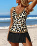 Tankini-badedrakt med panel i leopardmønster