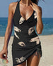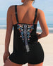 Tankinis-kjørt med åpen rygg og trykk