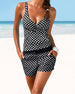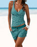 SPESIFIKASJONER Stil: Ferie Materiale: 15% Spandex,85% Polyester Anledning: Ferie Halslinje: V-hals Mønstertype: Trykt Erme lengde: Ermeløs Topp type: Tankini BH type: Bøyle-fri BH Truse type: Skjørt Passform type: Vanlig Årstid: Vår,Sommer Pakken inkluderer: 1 x Tankini STØRRELSESTABELL (cm) Størrelse Bryst Midje Hofte Under byste S 88 73...
