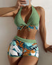 SPESIFIKASJONER Stil: Ferie, Sexy Anledning: Ferie Halslinje: Halter Mønstertype: Trykt Erme lengde: Ermeløs Topp type: Bikini BH type: Bøyle-fri BH Truse type: Shorts Passform type: Skinny Årstid: Sommer Detaljer: Snøre opp Materiale: Spandex, Polyester Pakken inkluderer: 1 x Bikini STØRRELSESTABELL (cm) Størrelse Bryst Midje Hof...