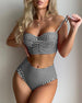 SPESIFIKASJONER Stil: Ferie Materiale: Spandex, Polyester Anledning: Ferie Halslinje: Spaghetti stropper Mønstertype: Plaid Erme lengde: Ermeløs Topp type: Bikini BH type: Bøyle-fri BH Truse type: Høyt snitt Passform type: Vanlig Årstid: Sommer Detaljer: Rynket Pakken inkluderer: 1 x Bikini STØRRELSESTABELL (cm) Størrelse Bryst Midje Ho...