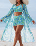 SPESIFIKASJONER Stil: Ferie, Sexy Materiale: Bomullsblandinger Anledning: Ferie Halslinje: Slag Mønstertype: Trykt Ermetype: Lanterne erme Erme lengde: Langermet Topp type: Bikini, Over-klær BH type: Bøyle-fri BH Truse type: Shorts Passform type: Skinny Årstid: Sommer Detaljer: Rynket Pakken inkluderer: 1 x Bikini, 1 x Strandklær STØRRELSES...