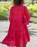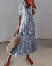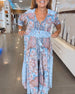 Kjole Rund Hals Kort Erme Blomstertrykk