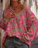 V-hals vintage kjole med geometrisk trykk