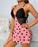 Icon1 Nattkjole Kontrastfarge Ryggløs Høy Splitt Sexy Hjerteprint