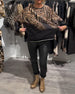Icon1 Uformell bluse med rund hals i leopardmønster