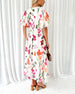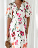 Stilig kjole med lomme med blomstertrykk og korte ermer