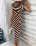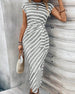 SPESIFIKASJONER Stil: Elegant Materiale: Bomullsblandinger Kjole type: A-line Kjolens lengde: Midi Halslinje: Rund hals Mønstertype: Stripete Ermetype: Raglan erme Erme lengde: Kort erme Detaljer: Bandasje,Rynket Passform type: Vanlig Årstid: Sommer Anledning: Daglig Pakken inkluderer: 1 x Kjole STØRRELSESTABELL (cm) Størrelse Bryst Midje Le...