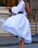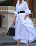 SPESIFIKASJONER Stil: Uformelt Materiale: Bomullsblandinger Kjole type: A-line Kjolens lengde: Maxi Halslinje: Slag Mønstertype: Ensfarget Ermetype: Pufferme Erme lengde: 3/4 erme Detaljer: Lomme,Knapper,Rynket Passform type: Vanlig Årstid: Vår,Sommer Anledning: Daglig Pakken inkluderer: 1 x Kjole STØRRELSESTABELL (cm) Størrelse Bryst Lengde...