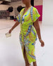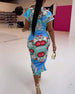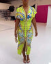SPESIFIKASJONER Stil: Sexy Materiale: 95% Bomull, 5% Polyester Kjole type: Bodycon Kjolens lengde: Midi Halslinje: V-hals Mønstertype: Trykt Ermetype: Vanlig erme Erme lengde: Kort erme Detaljer: Spalte,Rynket Passform type: Skinny Årstid: Sommer Anledning: Daglig Pakken inkluderer: 1 x Kjole STØRRELSESTABELL (cm) Størrelse Bryst ...