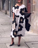 SPESIFIKASJONER Stil: Uformelt Materiale: Bomullsblandinger Kjole type: Rett Kjole Kjolens lengde: Midi Halslinje: V-hals Mønstertype: Trykt Ermetype: Flaggermus erme Erme lengde: Langermet Detaljer: Knapper Passform type: Løs Årstid: Vår,Sommer,Høst Anledning: Daglig Pakken inkluderer: 1 x Kjole STØRRELSESTABELL (cm) Størrelse Bryst Lengde ...