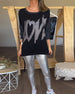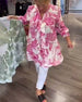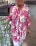 Bluse med trykt V-hals med knapp med trekvart ermer