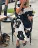 Kjole med blomstermønster med trekvart jakkeslag og snøring
