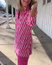 Langermet lang kjole med stativkrage med patchwork-trykt