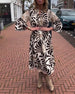 SPESIFIKASJONER Stil: Elegant Materiale: Bomullsblandinger Kjole type: Rett Kjole Kjolens lengde: Knelengde Halslinje: V-hals Mønstertype: Paisley Ermetype: Vanlig erme Erme lengde: 3/4 erme Detaljer: Lomme Passform type: Vanlig Årstid: Vår, Sommer, Høst Anledning: Daglig Pakken inkluderer: 1 x Kjole STØRRELSESTABELL (cm) Størrelse Bryst Len...