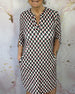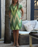 SPESIFIKASJONER Stil: Uformelt Materiale: 5% Spandex, 95% Polyester Kjole type: A-line Kjolens lengde: Knelengde Halslinje: Slag Mønstertype: Geometrisk trykk Ermetype: Vanlig erme Erme lengde: Kort erme Detaljer: Rynket Passform type: Vanlig Årstid: Vår, Sommer Anledning: Daglig Pakken inkluderer: 1 x Kjole STØRRELSESTABELL (cm) ...